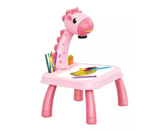MINI PROJETOR PARA DESENHO INFANTIL GIRAFA ROSA