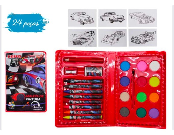 ESTOJÃO ESCOLAR 24 PÇS CARROS FRMULA 1 CR01