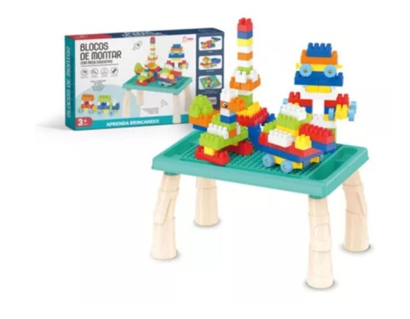 BLOCO DE MONTAR VERDE COM MESA EDUCATICO 100PÇS TK-AB8485