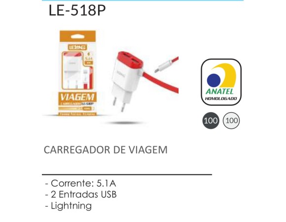 CARREGADOR IPHONE RAPIDO 5.1A 2USB