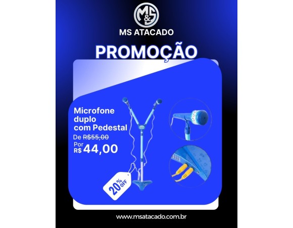MICROFONEC/ PEDESTAL DUPLO AZUL INFANTIL